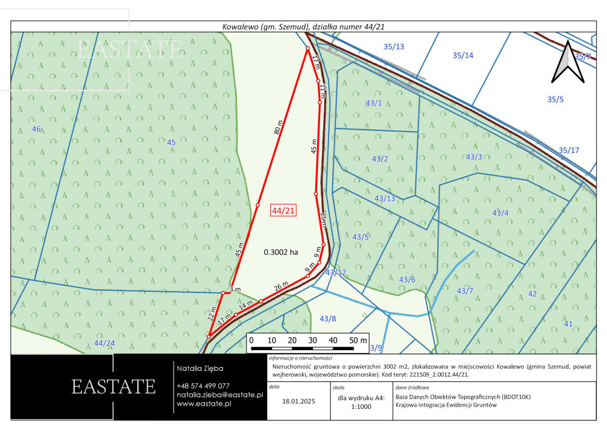 • Status: działka nieogrodzona, z pełnym potencjałem do zagospodarowania według własnych potrzeb