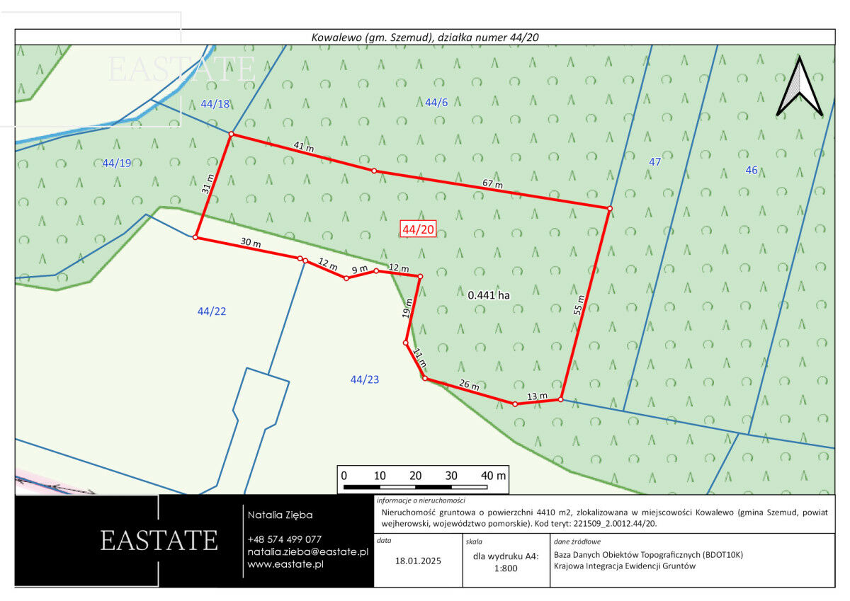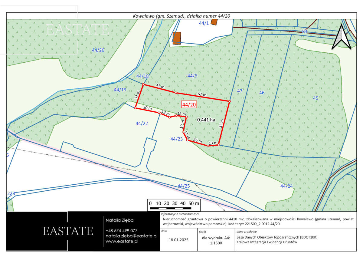 • Status: działka nieogrodzona, z pełnym potencjałem do zagospodarowania według własnych potrzeb